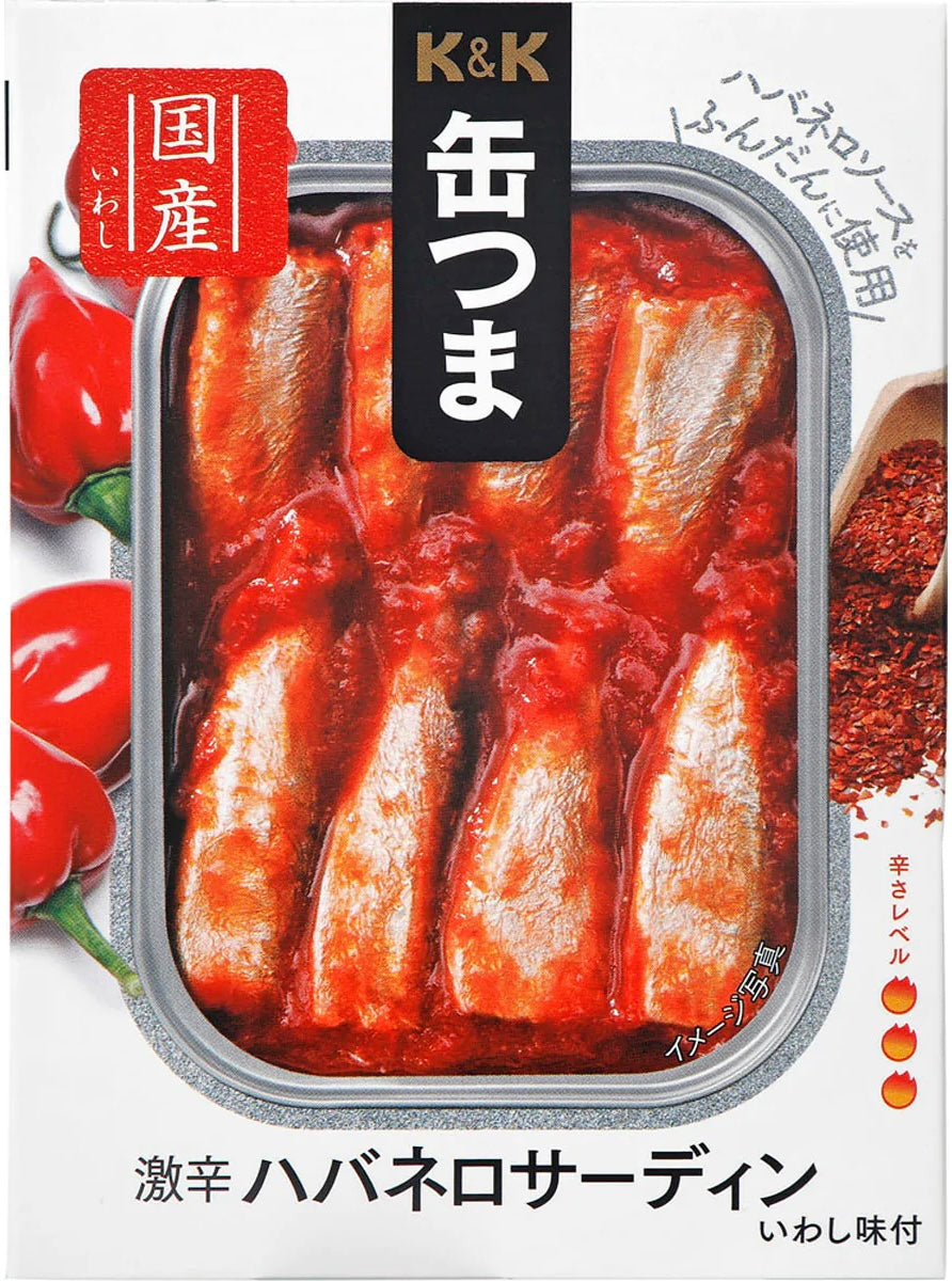 Canned Food Sardine KANTSUMA Habaneros Sauce Spicy Preserved Snack Japanese 105g Instant Retort Set Japan Snack Seafood Meal Prepared Hot Red Chili Spice Fish