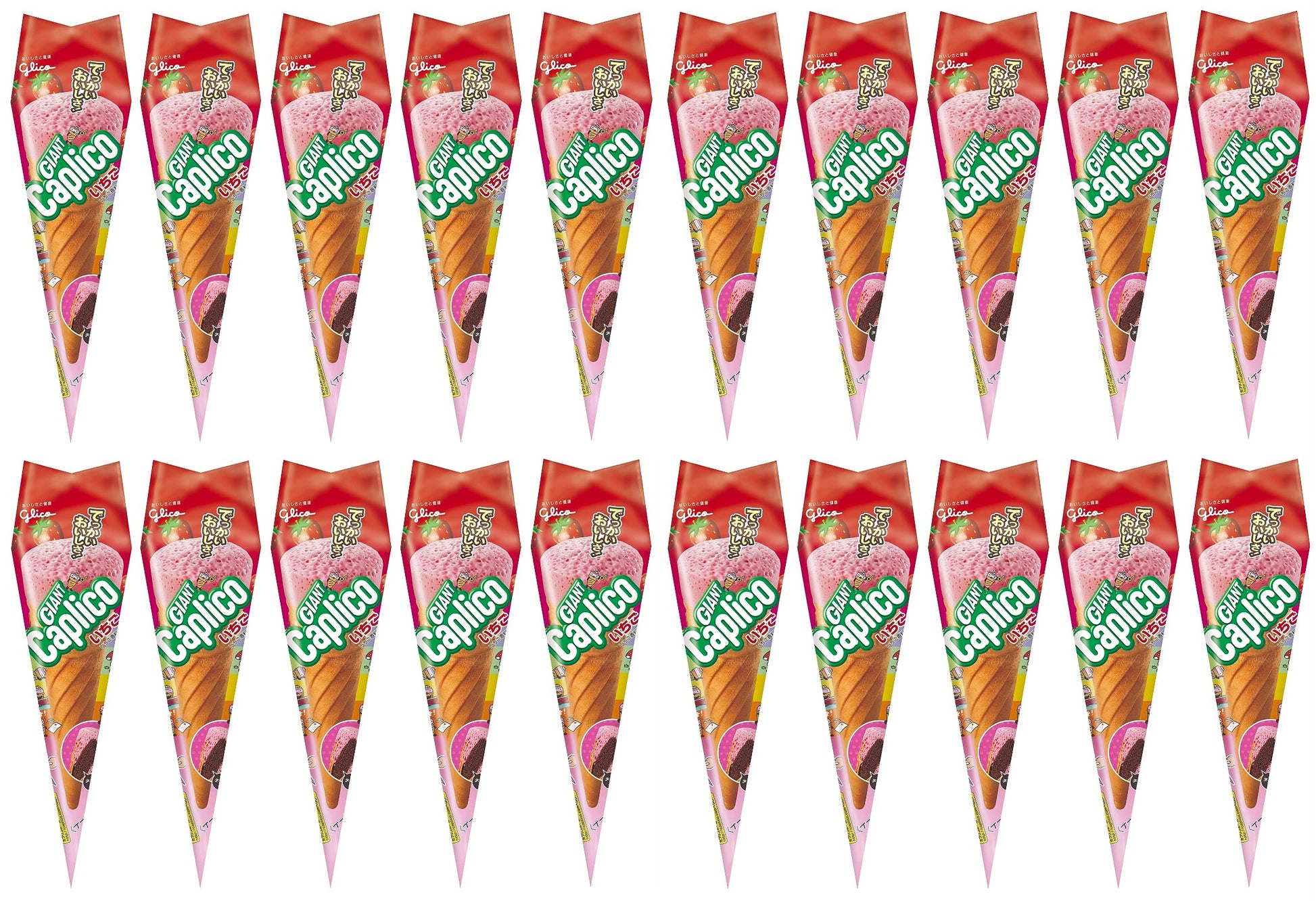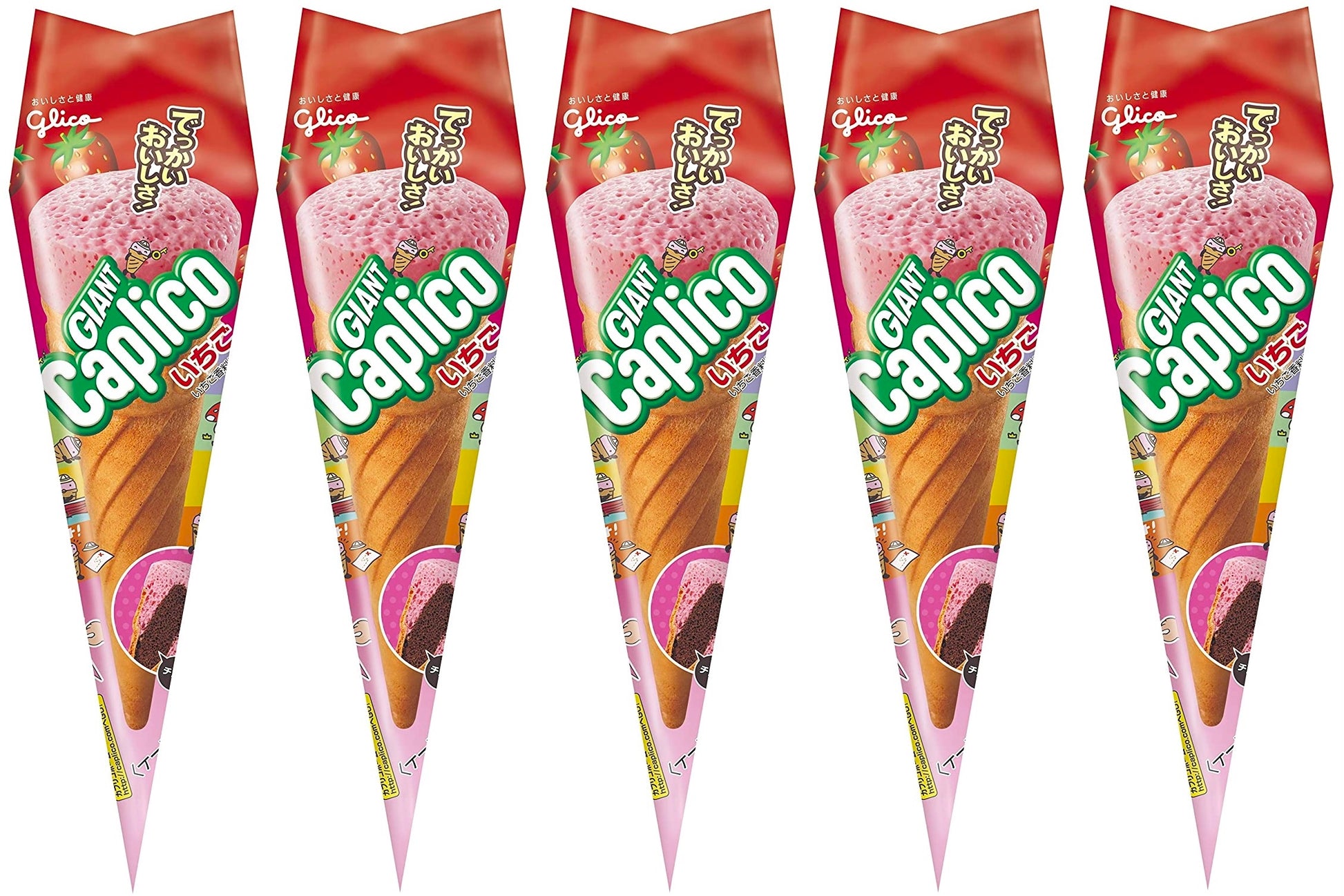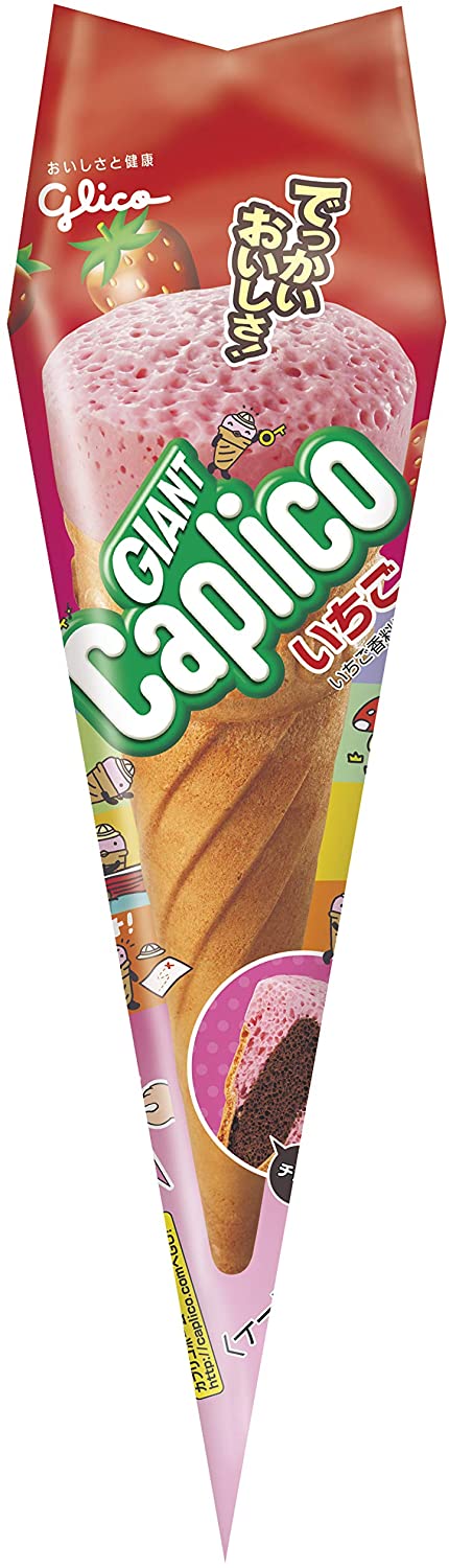 Caplico Strawberry Chocolate Milk Ice Cream Cone Puffed Snack Sweet Glico Japan