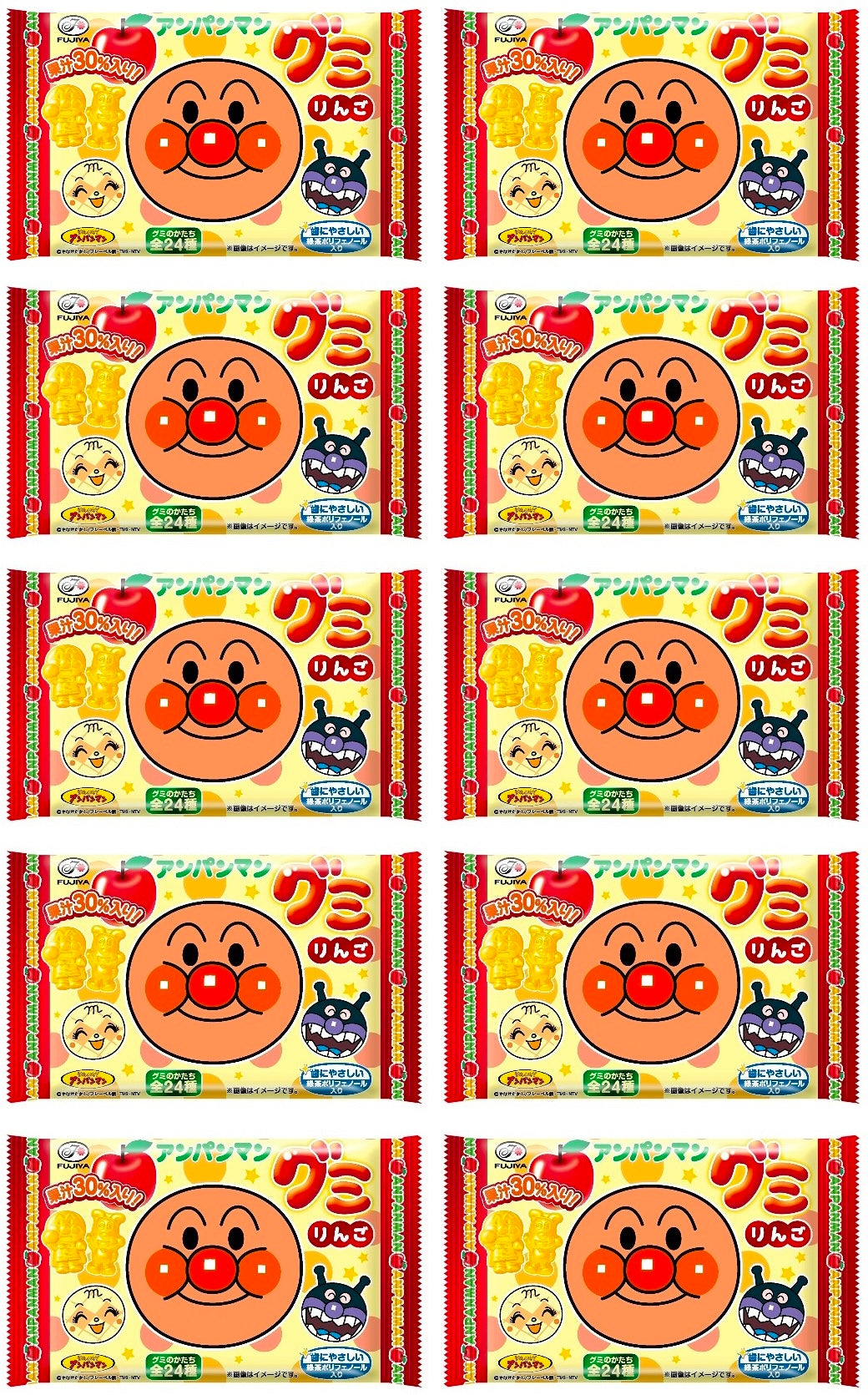 Anpanman gummies in apple flavor.
