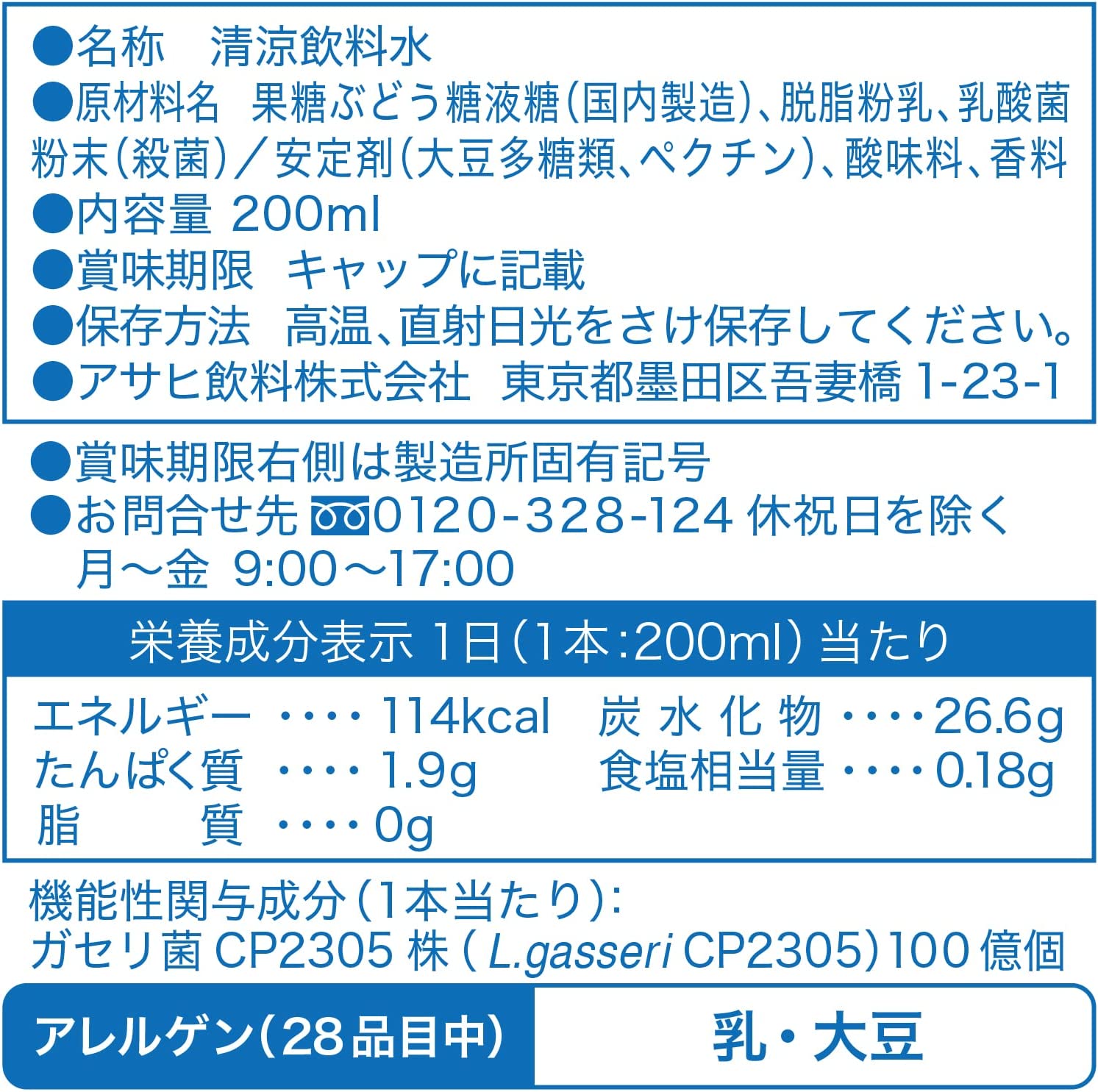 This lactic beverage contains L. gasseri CP2305 strain, which was selected through years of research on lactic acid bacteria derived from "Calpis".
