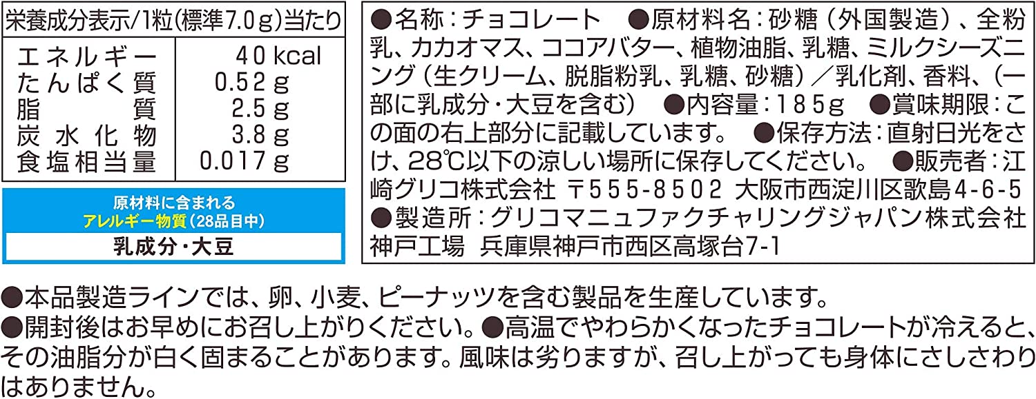 These large chocolate chips are made from cacao roasted in-house at Glico's Kobe factory.