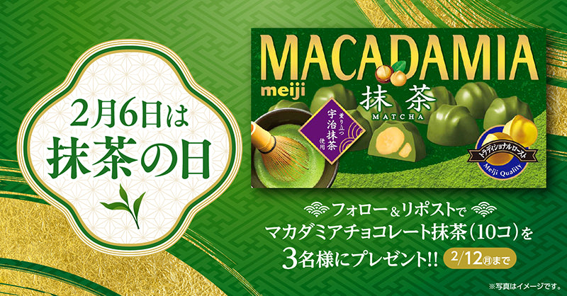 Macadamia nuts with a soft texture are covered with chocolate made from Uji matcha green tea.
