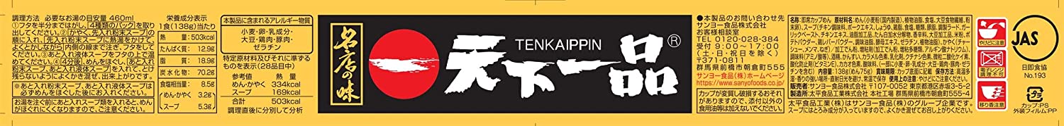 Japanese Ramen Noodles TENKAIPPIN Chicken Broth Instant Food Soup Cup SANYO 138g Premium Retort Bone Japan Rich Soba Garlic Powder Green Onion