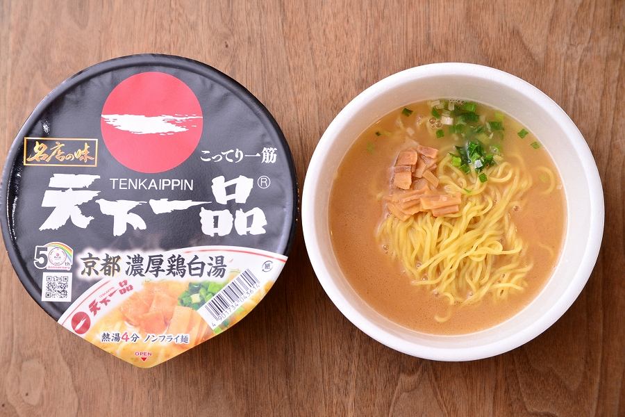 This thick chicken white soup ramen replicates the flavor of Kyoto's popular "Tenka Ippin" ramen restaurant.