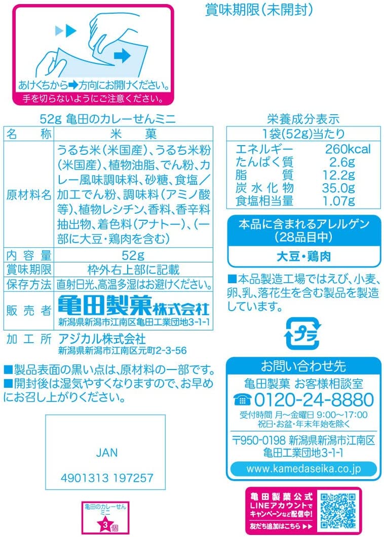 Japanese Rice Cracker Curry Senbei Spicy Snack Crispy Powder Food Kameda 52g Japan Spice Hot Chili Kamedaseika Mild Pack Chips
