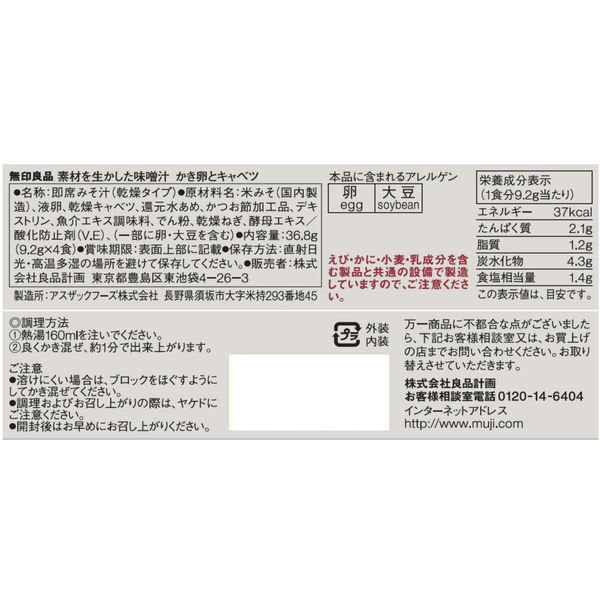 MUJI Freeze Dried Miso Soup Egg Cabbage Instant Food Broth Cup Japanese 39.8g Japan Dietary Healthy Health Diet Japanese