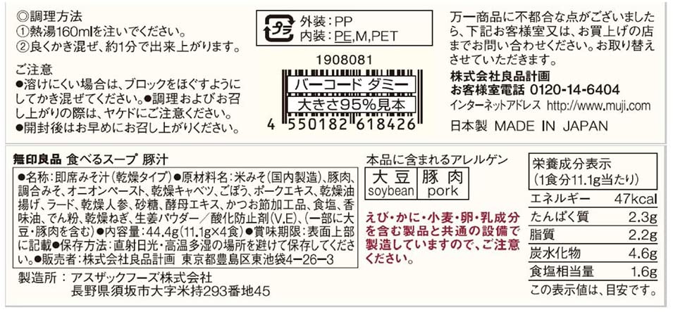 MUJI Freeze Dried Miso Soup Pork Vegetable Butajiru Instant Dietary Japan 44.4g