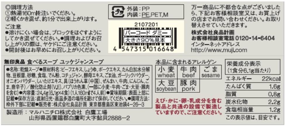 MUJI Freeze Dried Soup Yukgaejang Spicy Beef Vegetables Instant Food Japan 24.4g Korean Soy Sauce Gochujang Sesame Oil Healthy Dietary