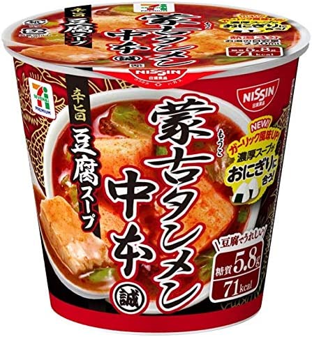 NISSIN Spicy Soup Mouko Tofu Chili Noodles Cup Instant Food Soup Japanese 18g Tanmen Ramen Red Hot Pepper Retort Japan Soy Soybeans Rice Ball Onigiri Miso