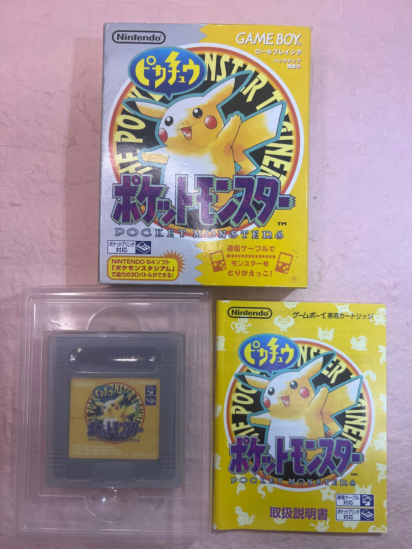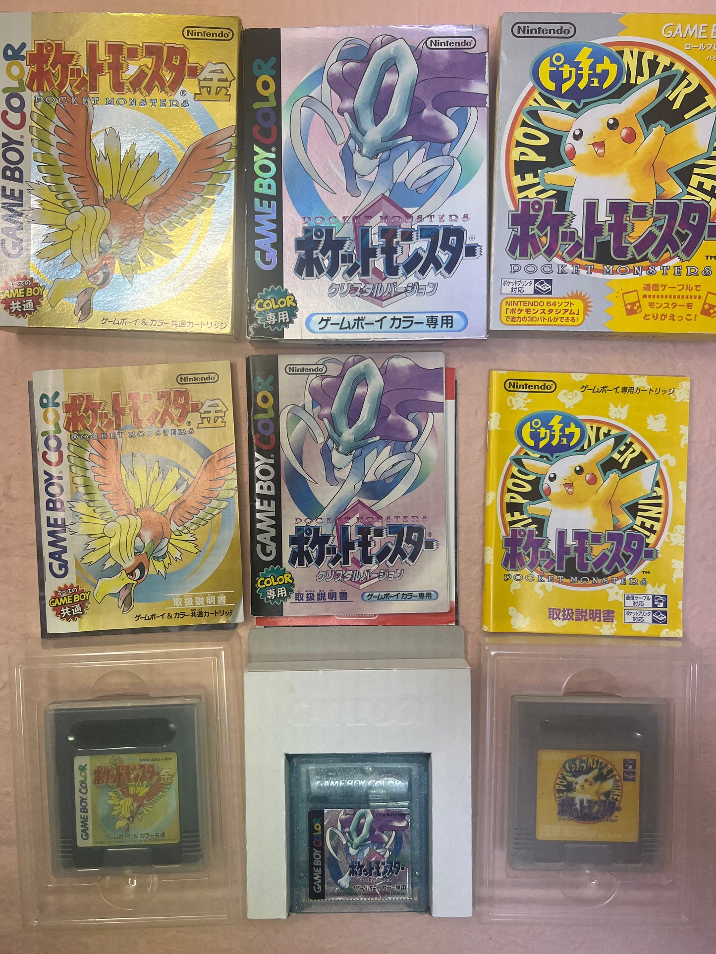 Pokemon Crystal Gold Yellow GameBoy Color USED Box Manual Lot Japanese Authentic Nintendo NTSC-J Game Boy GB GBC Japan Pikachu Version Ver Case Scratch